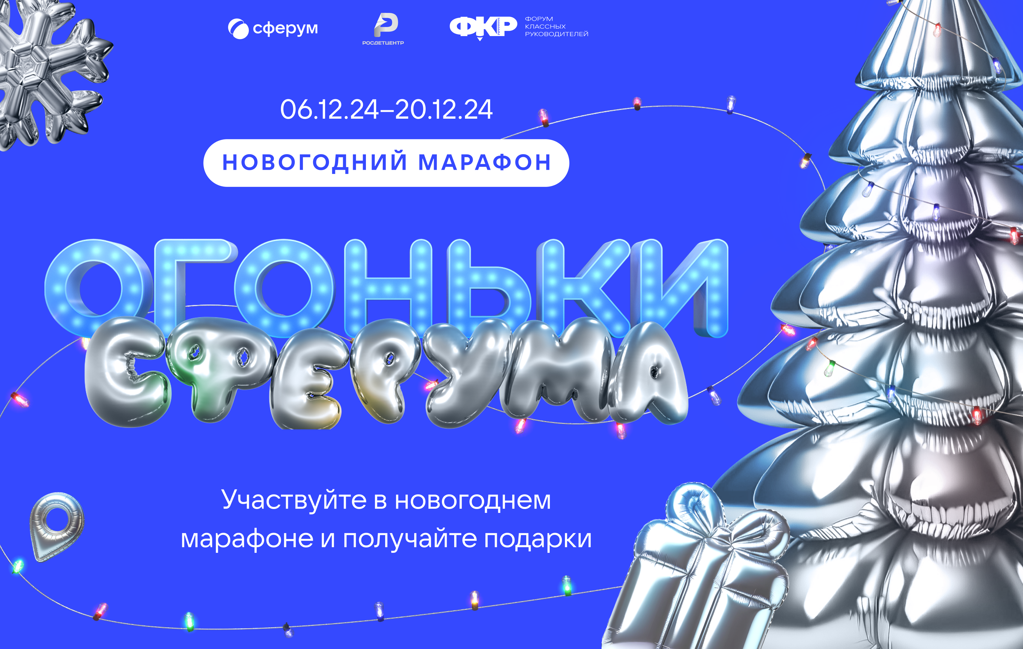 Сферум запускает Всероссийский новогодний марафон «Огоньки Сферума» для педагогов и учащихся детских садов, школ, творческих кружков и колледжей. Проект реализуется в партнерстве с ФГБУ «Росдетцентр» и Форумом классных руководителей.
